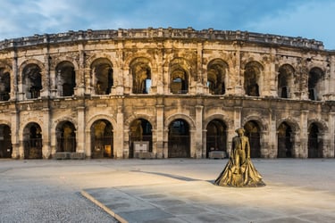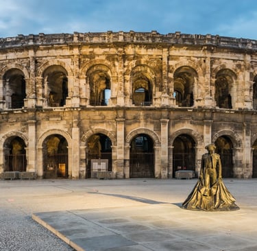 Via Nîmes (met zijn Romeinse arena) rij je richting Middellandse Zee. Plots zie je het blauw van de zee verschijnen.